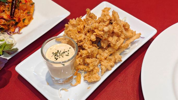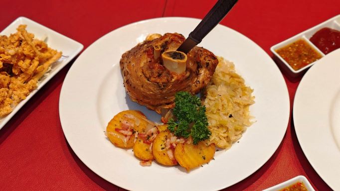 แต่คือจานที่พาให้เรานึกถึงความอบอุ่นบนโต๊ะอาหารที่ขาดไม่ได้ อ อาหารซึ่งยังคงคอนเซ็ปต์ของร้านนั่งชิลเหมือนเดิม ขาหมูเยอรมัน สูตรดั่งเดิมของร้าน โดดเด่นด้วยการใช้เทคนิคการอบ เพื่อรีดมัน และผ่านขั้นตอนขบวนการทำกว่า 3 ชั่วโมง จนได้หนังที่มีความกรอบปราศจากไขมัน และเนื้อขาหมูที่มีความนุ่มเป็นพิเศษ จากการเติมเบียร์ไปทีละน้อยๆ ในระหว่างขั้นตอนของการอบ เสิร์ฟกับเยอรมันมัสตาส และน้ำจิ้มซีฟู้ดรสเด็ด สำหรับผู้ที่ชื่นชอบรสจัดจ้าน ถ้าจะมาที่นี่ และอยากทานขาหมูอร่อยๆ แนะนำต้องสั่งจองก่อนมีจำนวนจำกัด