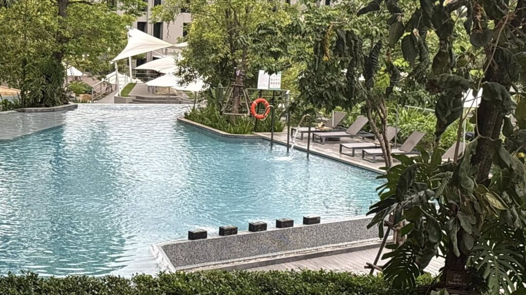 จากห้องพักมองเห็นสระว่ายน้ำ OLYMPIC POOL ขนาดสระ 7 x 50 ม. สำหรับว่ายน้ำแบบแข่งขันว่ายน้ำ และความลึกสูงสุดที่ 3 ม. สามารถดำน้ำฝึกสกิล Freediving มีฟินให้ใช้ Paddle board ให้พาย และมี Sea Scooter ให้เล่นไม่ต้องกังวลเพราะมีไลฟ์การ์ดสแตนบายในช่วงเวลาที่เปิดให้บริการ กิจกรรมที่เปิดให้ทุกคนเข้าร่วมคลาสไม่เหมือนกัน สามารถดูได้จากบอร์ดกิจกรรมและโปรแกรมตอนเช็คอิน